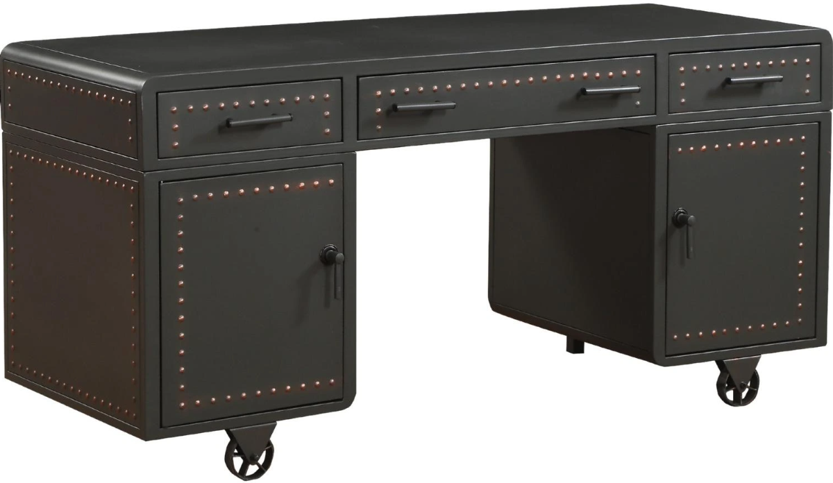 The industrial and classic design of the Actaki desk creates a spacious work area. The drawers maximize your space and your options in classic style, while keeping all your essentials neatly and safely tucked away. The gray finish and industrial-style wheels add a different look to any workspace.Read More