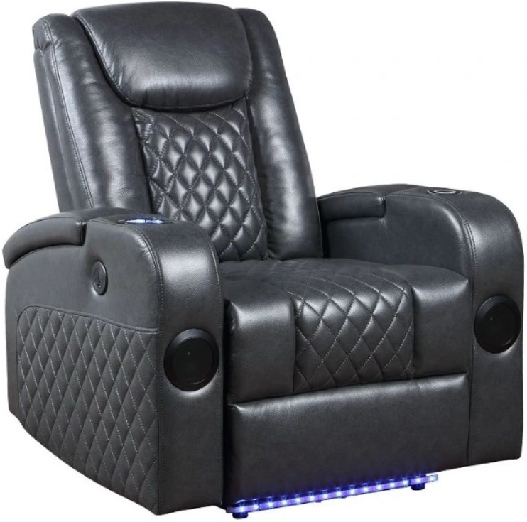 This Aliar power motion recliner is designed to provide the ultimate level of comfort and convenience for your movie and gaming experience. The 22'' wide seat is spacious enough to accommodate people of all sizes. Upholstered in modern dark gray leather-aire.Read More