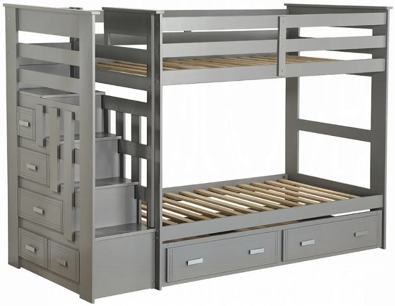 The included staircase allows easy access to the top bunk. For additional storage convenience, this set is complemented by the staircase drawers, and convertible trundle storage drawer, which can be easily be transformed into a pull-out twin size bed by just removing the center panel board.