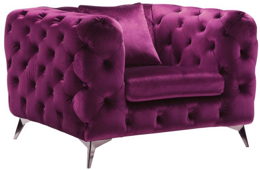 Elegant and eye-catching, the beautiful Atronia chair is the perfect addition to any space. Chic button tuft design with bright color cover, strength, and beauty guaranteed with sturdy wood frame and chrome legs. This chair is bound to be the conversation piece.Read More