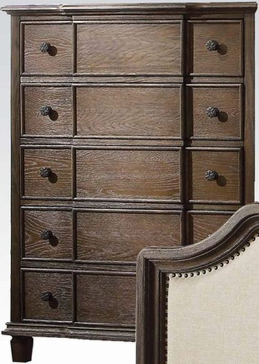 The Baudouin collection is the embodiment of hominess and comfort. Crafted with simple shape headboard and footboard and beige linen padded, matching case goods in distress gray finish, this bedroom set will bring you warmer and more relaxed environment to unwind at the end of a long busy day.