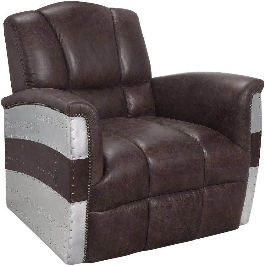 Armrest: Inside flared padded, outside: patchwork aluminum+top grain leather frame