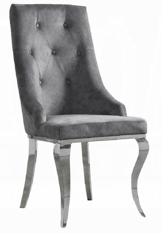Rest upon the Dekel tufted chairs and sink into comfort with their thick and luxurious foam cushions that provide long-lasting comfort. The backrest includes a metal pull ring that assists when pulling out the chairs to sit on. The beautiful neutral gray upholstery will fit right in with any decor or color scheme.Read More