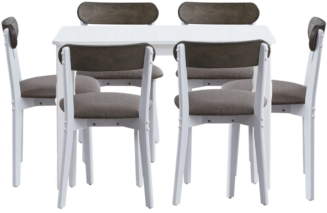 Fidelity dining set exudes modern charm with its sleek design and two-tone chairs. This dining set includes a stylish table and four comfortable chairs, perfect for family meals and gatherings. The chairs feature contrasting tones that add a touch of elegance and visual interest to your dining space. Ideal for contemporary homes.Read More