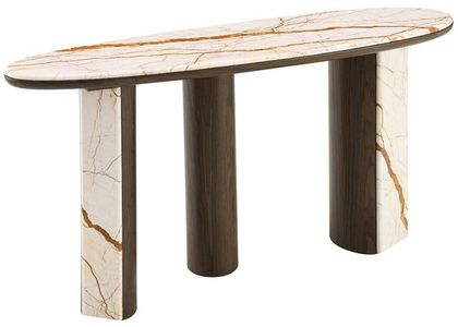 The Haidar console table features a genuine natural marble surface with unique veining, set on a warm brown veneer base. Its modern, substantial design offers a durable, elegant focal point for contemporary living spaces.Read More