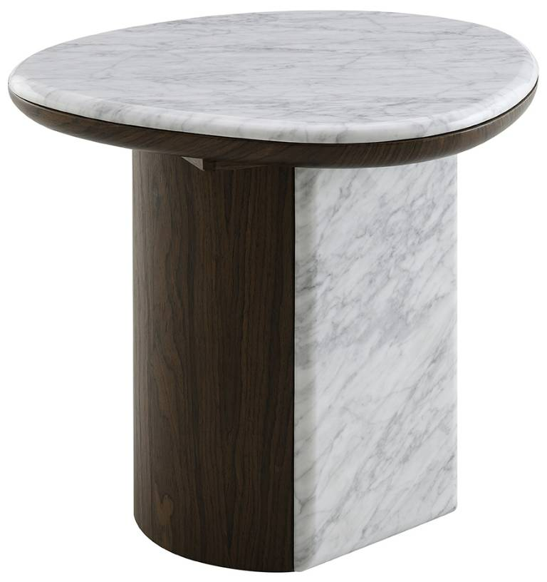 The Haidar end table features a genuine natural marble surface with unique veining, set on a warm brown veneer base. Its modern, substantial design offers a durable, elegant focal point for contemporary living spaces.Read More