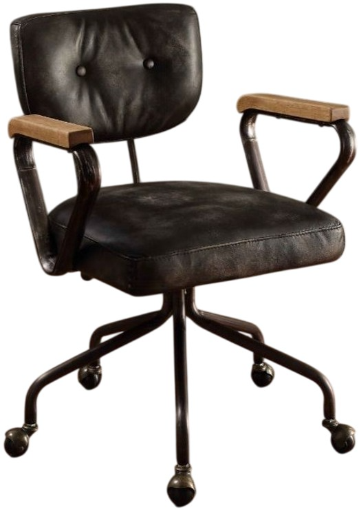 Our durable Hallie office chair gets its industrial look from oversized button tufted back and vintage top grain leather. The 5-star swivel base fitted with casters, it keeps you moving from one task to the next.Read More