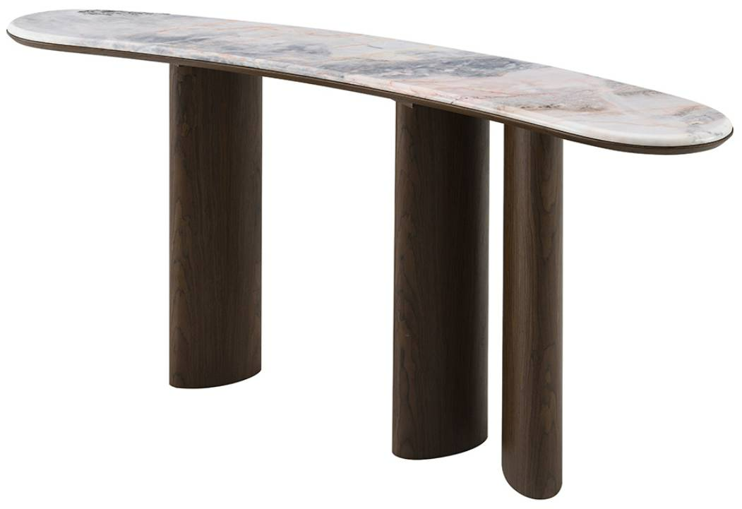 The Hanale console table features a genuine natural marble surface with unique veining, set on a warm brown veneer base. Its modern, substantial design offers a durable, elegant focal point for contemporary living spaces.Read More