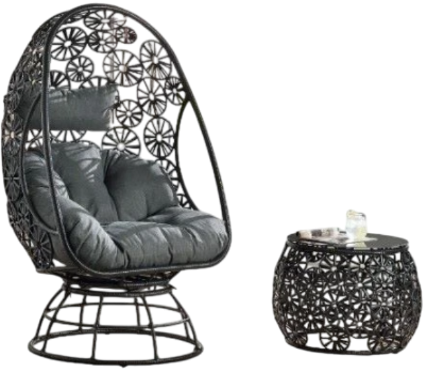 Elegant, airy wicker-weaving work offers a lovely retreat to relax your body and soothe your mind. Black wicker frame with metal base highlights the fabulously airy and sturdy construction. Teardrop-shaped design combines beautiful floral accents to create a sophisticated look.Read More