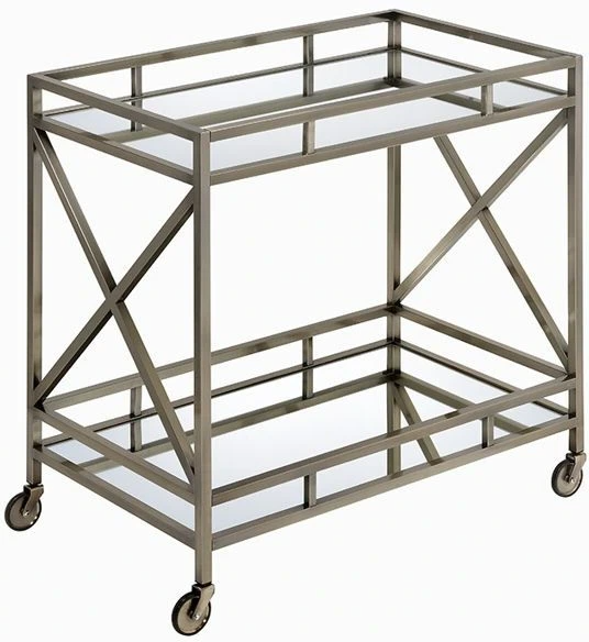 The Kristensen serving cart offers both functionality and superiority for any space in your home. The openwork metal frame finished in antique brass with two-tiered mirror design and the four caster wheelbase effortlessly rolls around.Read More