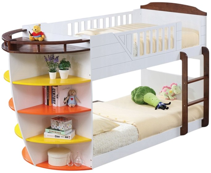 Twin/twin bunk with storage shelves