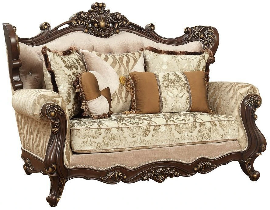 Shalisa Walnut Loveseat with classical palace curved wingback style, this elegant sofa set come with intricately carved solid wood frame outlines the gracefully curved rolled arms. Make a bold statement to your living area.Read More