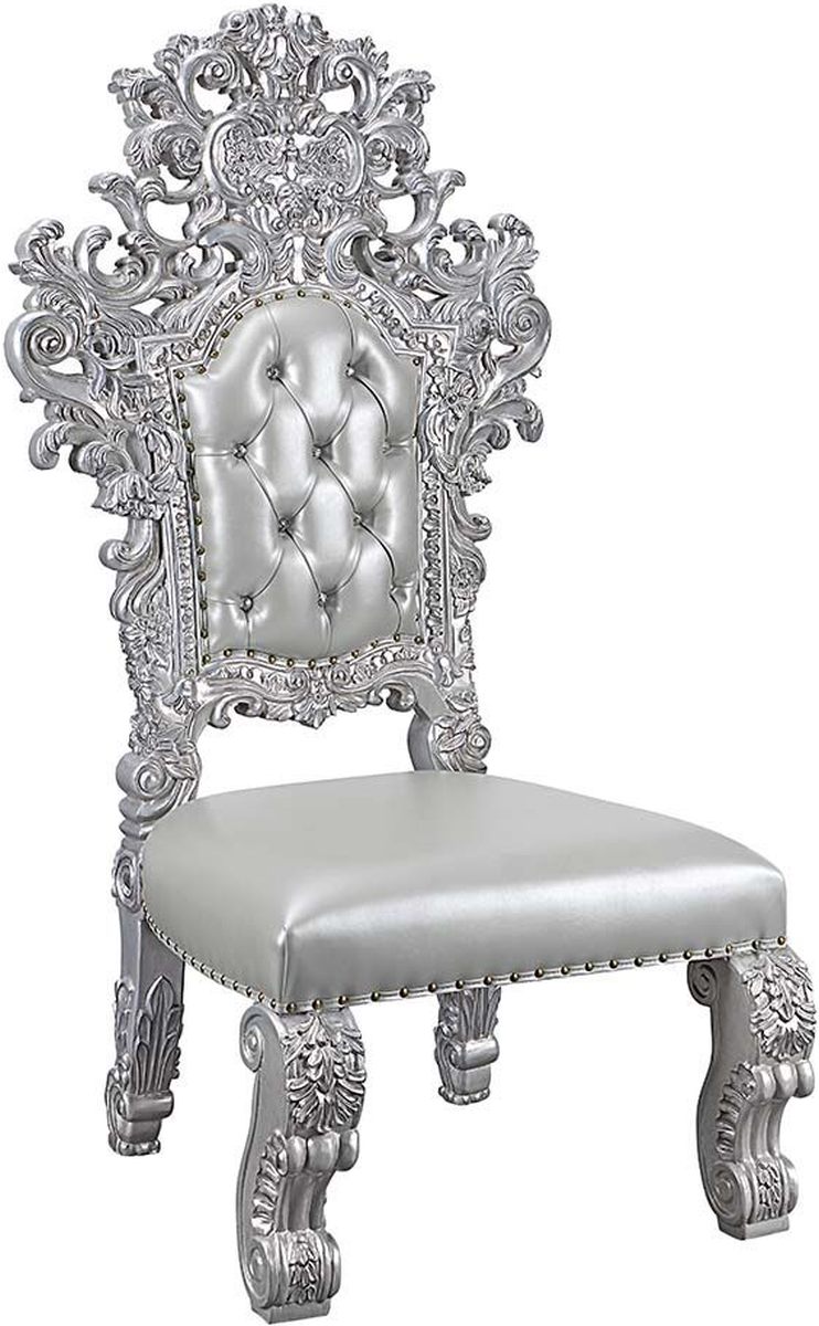 See the extravagant style and classical design all over the Valkyrie Dining Room Collection. Bold, intricate scrollwork accent is highlighted throughout each piece in this collection. Antique Platinum Finish paired with muted gray tone brings attention to its gorgeous details.Read More