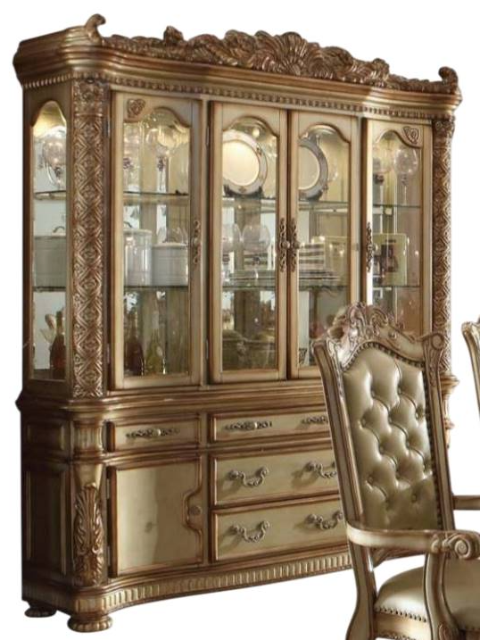 The Vendome Bone/Gold Patina Buffet with Hutch is a striking and sophisticated piece that adds timeless elegance to any dining room or living space. Featuring a soft gold patina finish with a beautiful bone-colored accent, this buffet offers a luxurious look while providing ample storage with spacious drawers and cabinets.Read More