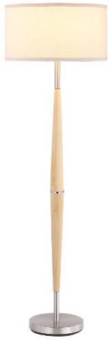 A casual, contemporary floor lamp blends wood and metal to create a stylish look