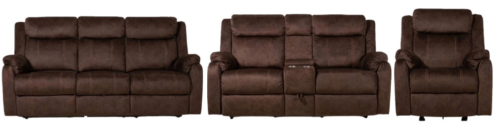 Transform your living room, den, or loft into a stylish and comfortable space with this reclining collection from Global Furniture USA. The traditional styling and versatile design elements make a statement in any room. The stylish fabric makes coordinating room decor easy, while the lift-up consoles with convenient storage and cup holders add practicality.Read More