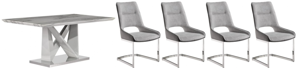 For a stylish and dramatic impression seek no further than this grey faux marble dining table. Elegant in style this ultra contemporary dining table will be the talk of your dining space. Design elements are not in short supply with this table, featuring an architectural pedestal base, stainless steel bottom plate.Read More