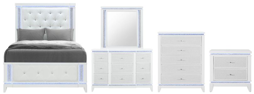 The Global Furniture USA Alina 5-Piece White Queen Panel Bedroom Set with LED is a highly stylish, functional, and luxurious bedroom furniture set that blends design with smart features like integrated LED lighting.Read More