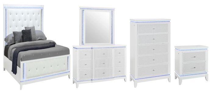 The Global Furniture USA Alina 5-Piece White King Panel Bedroom Set with LED is a highly stylish, functional, and luxurious bedroom furniture set that blends design with smart features like integrated LED lighting.Read More