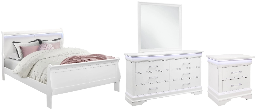 Includes: (1) queen bed, (1) dresser, (1) mirror and (1) nightstand