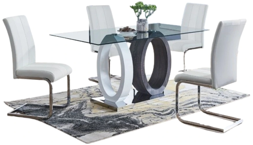 Striking ultra modern design and bold styling this dining table by Global Furniture USA is in a class all by itself. This table boasts a rectangular clear glass top, contrasting oval design supports and stainless steel base with a polished chrome finish.Read More