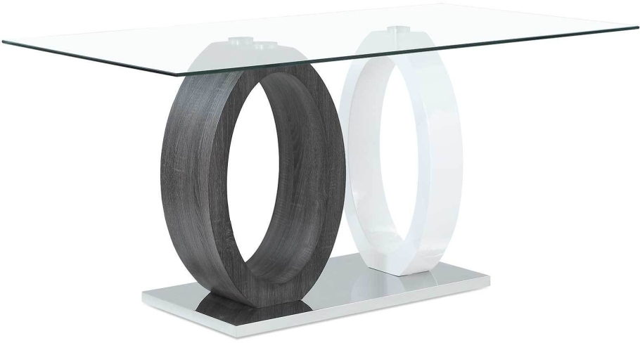 Striking ultra modern design and bold styling this dining table by Global Furniture USA is in a class all by itself. This table boasts a rectangular clear glass top, contrasting oval design supports and stainless steel base with a polished chrome finish.Read More