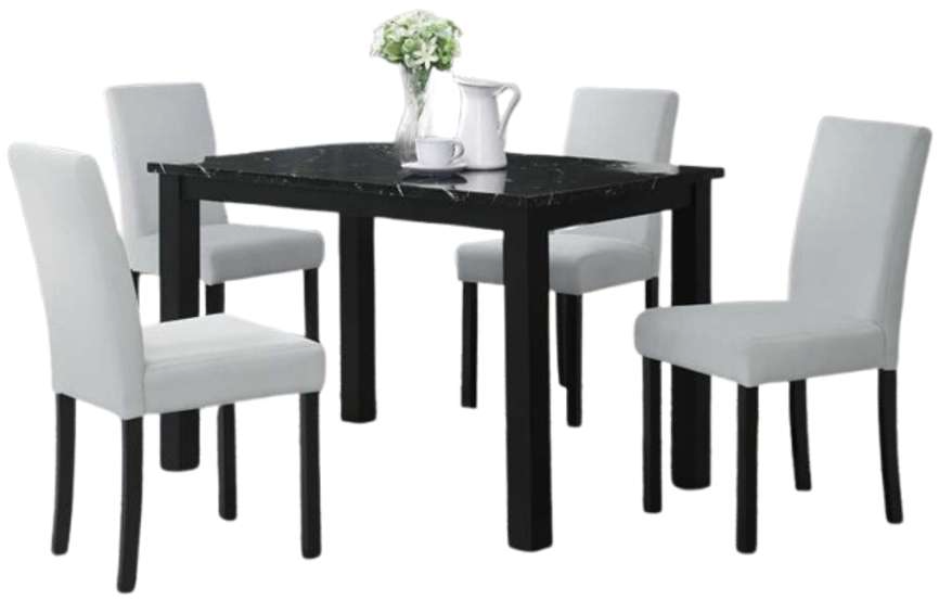 The D8032 Black Dining Table paired with the D9026 Silver Dining Chair Collection from Global Furniture brings a contemporary and sophisticated look to your dining area. The dining table features a sleek black melamine top with striking white veining, offering a bold and modern aesthetic that effortlessly enhances any space.Read More