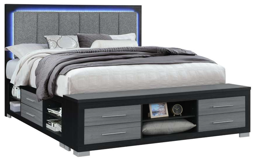 With its ingenious all-around storage design which provides ample space for bedding, clothing, and more. The two-tone black and grey finish completes the contemporary look, making this bed a true standout in any bedroom.