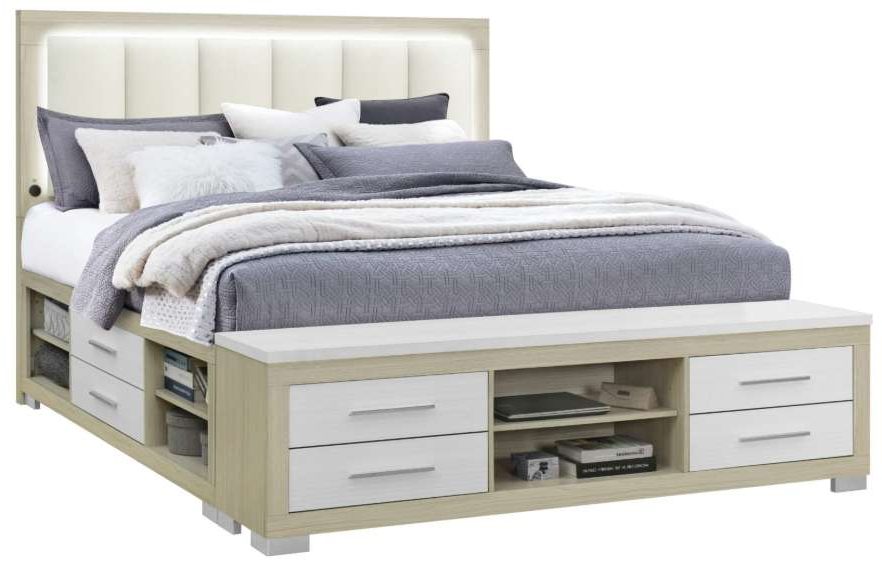 With its ingenious all-around storage design which provides ample space for bedding, clothing, and more. The two-tone natural wood and white finish completes the contemporary look, making this bed a true standout in any bedroom.