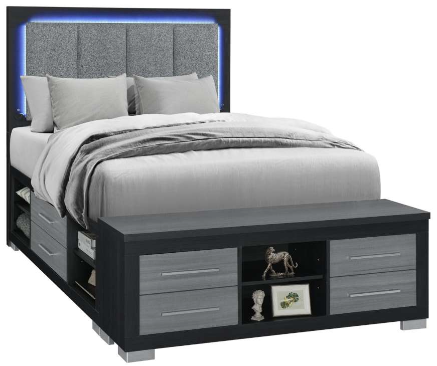 With its ingenious all-around storage design which provides ample space for bedding, clothing, and more. The two-tone black and grey finish completes the contemporary look, making this bed a true standout in any bedroom.