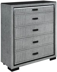 The Isabella Chest brings together elegant design and everyday utility. Featuring fluted grey fabric drawer fronts, this tall chest offers ample storage and includes built-in led lighting for a sleek, ambient touch that enhances its upscale feel.Read More