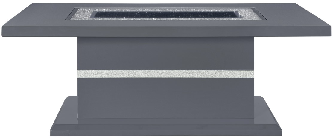 Constructed of Medium Density Fiberboard, Glass and Acrylic this dining table makes a bold statement. Finished in a Dark Grey and Silver with a center glass, rectangle shape and pedestal base you will have more than enough room to entertain.