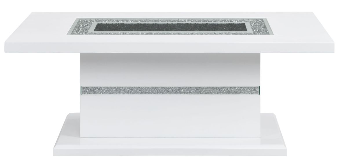 Constructed of MDF, Glass and Acrylic this dining table makes a bold statement. Finished in a White and Silver with a center glass, rectangle shape and pedestal base you will have more than enough room to entertain.