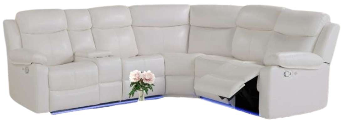 The addition of a console with storage and cupholders enhances the functionality of this piece, making it perfect for movie nights or cozy evenings at home. Finished in a blanche white, this sectional combines elegance with practicality, creating a sophisticated focal point for your living space.
