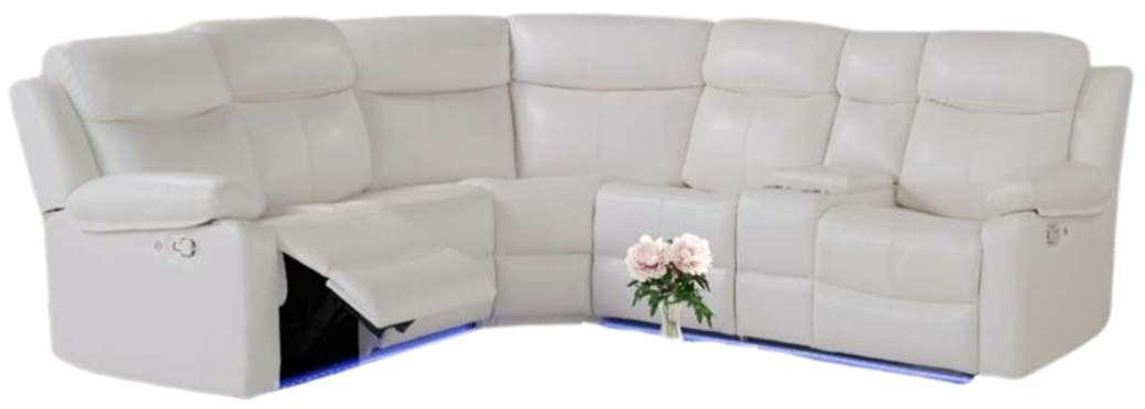 The addition of a console with storage and cupholders enhances the functionality of this piece, making it perfect for movie nights or cozy evenings at home. Finished in a blanche white, this sectional combines elegance with practicality, creating a sophisticated focal point for your living space.