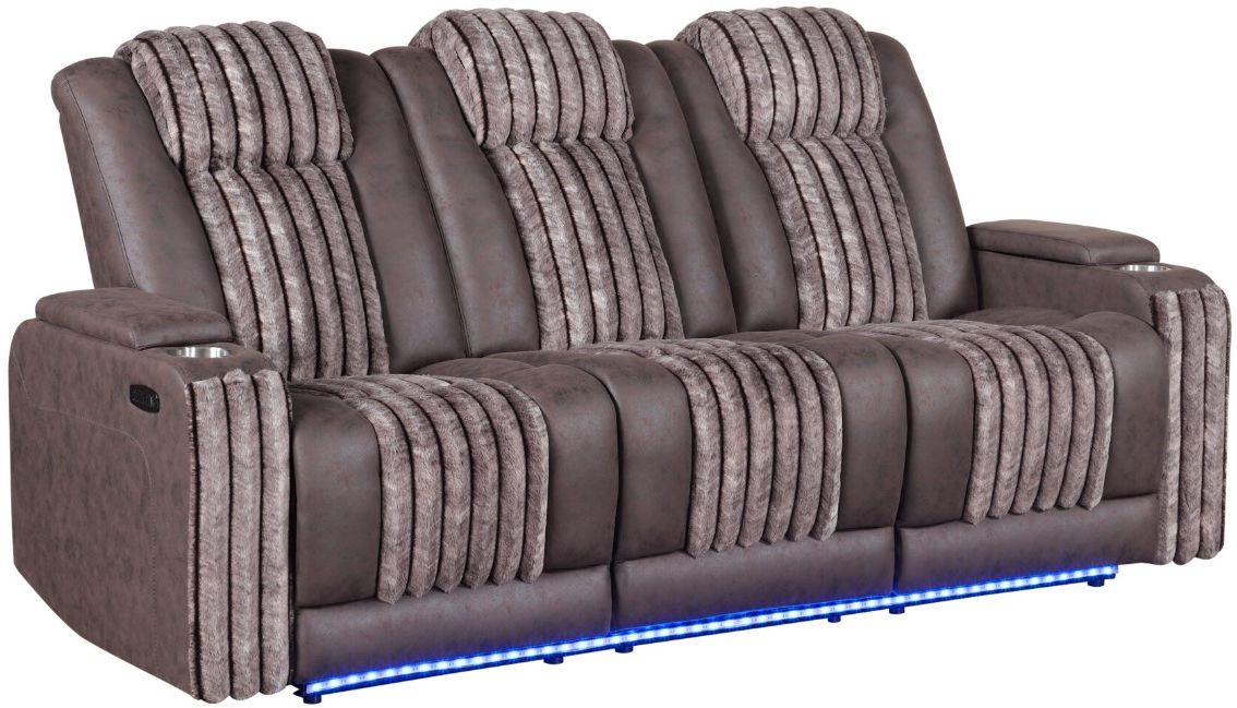 The Global Furniture U6638 brown power recliner with led combines rich brown upholstery with sleek integrated led lighting, offering a striking focal point. Driven by a power mechanism, it allows effortless reclining. Plush cushioning and modern accents deliver both style and comfort in one elegant piece.Read More