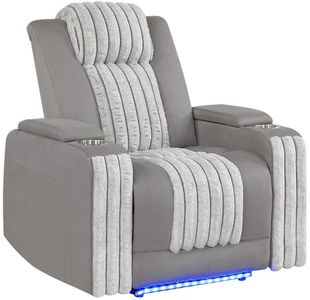 The Global Furniture U6638 Gray power recliner with led combines rich brown upholstery with sleek integrated led lighting, offering a striking focal point. Driven by a power mechanism, it allows effortless reclining. Plush cushioning and modern accents deliver both style and comfort in one elegant piece.Read More