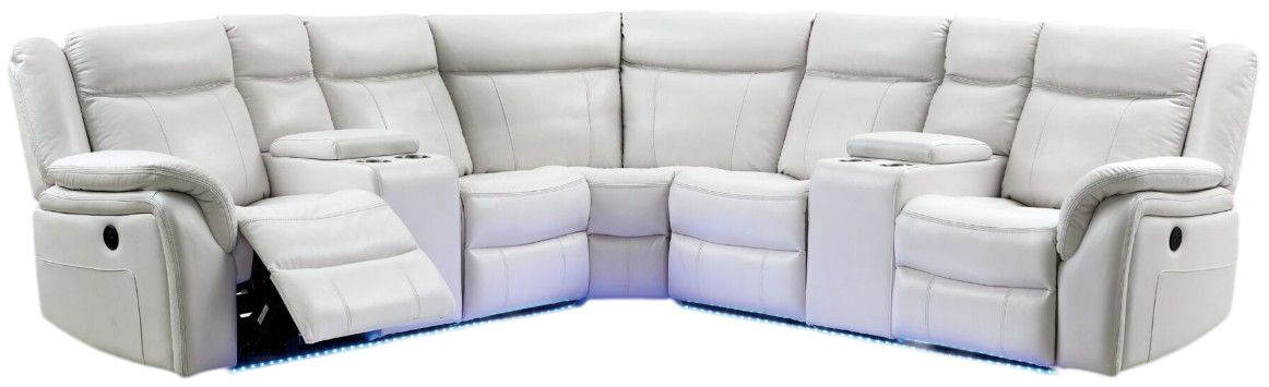 The UM02 white sectional by Global Furniture USA is a stunning and comfortable addition to any living room. The sectional is upholstered in white bonded leather and features overstuffed cushions and power recline for maximum comfort. The led accent lights along the base of the sectional provide a soft and inviting ambiance.Read More