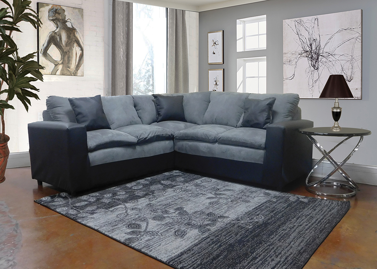 Contemporary Style Sectional In A Two-Tone Black Pu & Grey Microfiber Seats And Backs. Back & Seat Cushions Are Attached. Pillow Top Seat Cushions. Contrast Toss Pillows.Read More