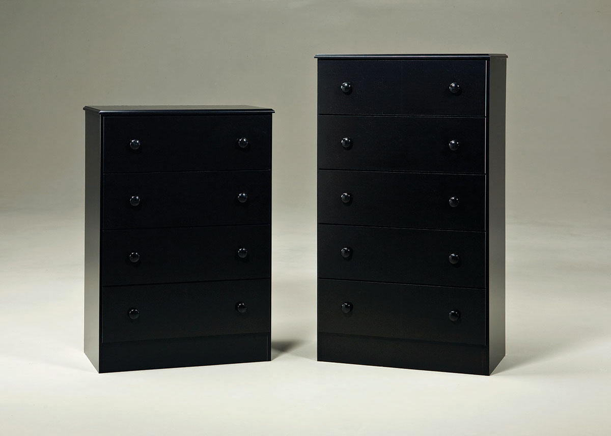 Promotional 4 And 5 Drawer Chests. Roller Guided Drawers. Black Color.