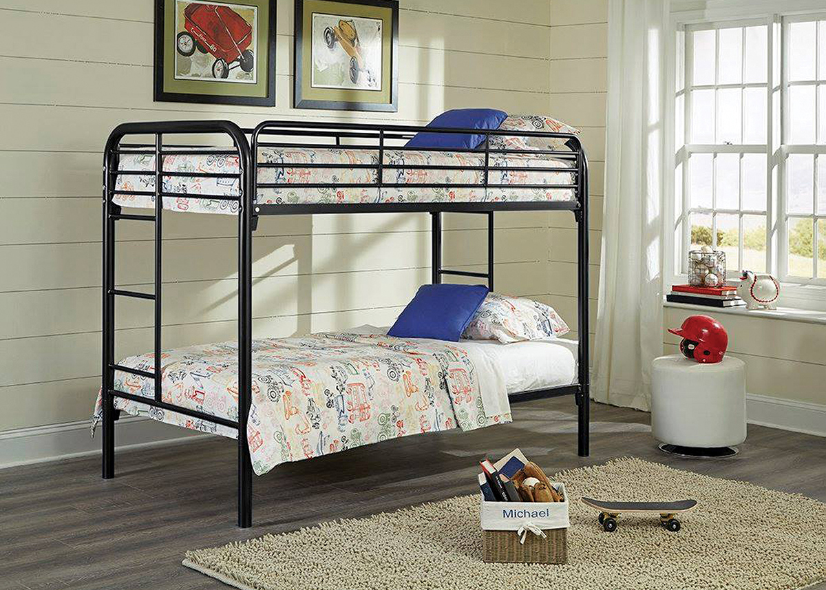 Twin Over Twin Metal Tubular Bunkbed. Built In Ladder In Both End Of The Bunkbed. Bunkbed Does Not Need A Foundation, Mattress Ready. Bunkbed Does Not Separate. Bunkbed Are In Compliance With The Us Consumer Product Safety Commision. Top Bunk Bed Does Not Exceed 165 Lbs. Available In Three Colors. Bunk Bed Is In Black Finish.