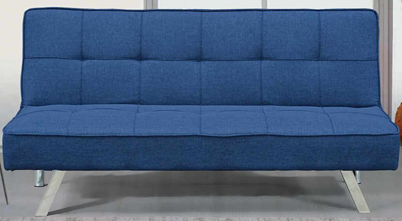 Three Position Clickbed In A Blue Textured Fabric. Featuring Biscuit Tufted Back And Sturdy Chrome Legs.
