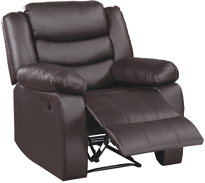 Recliner In A Brown Pu Fabric. Triple Channeled Back With Scoop Seating. Chaise Style Foot Rest. Matching Reclining Sofa & Reclining Loveseat Available As U109.Read More