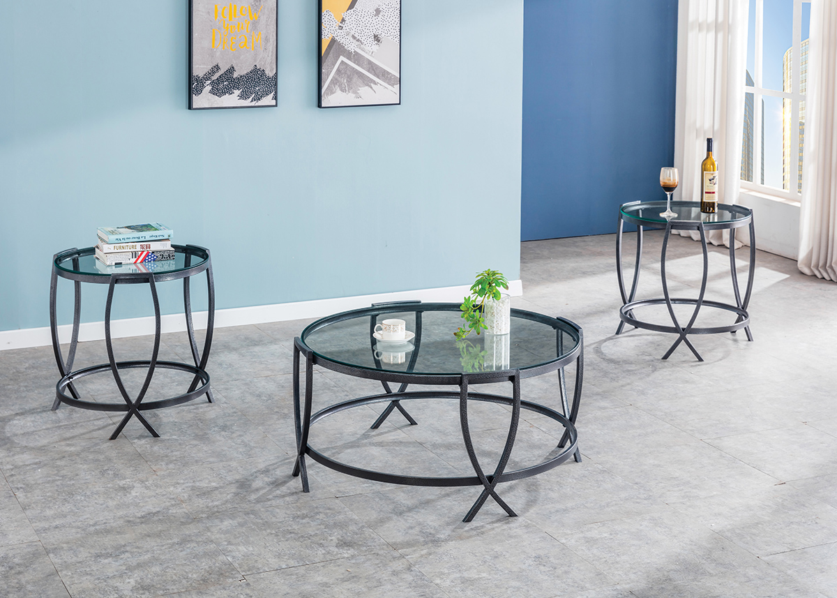 Contemporary Style Tables In A Hammered Grey Finish