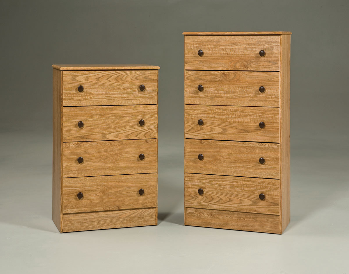 Promotional 4 And 5 Drawer Chests. Roller Guided Drawers. Oak Color.