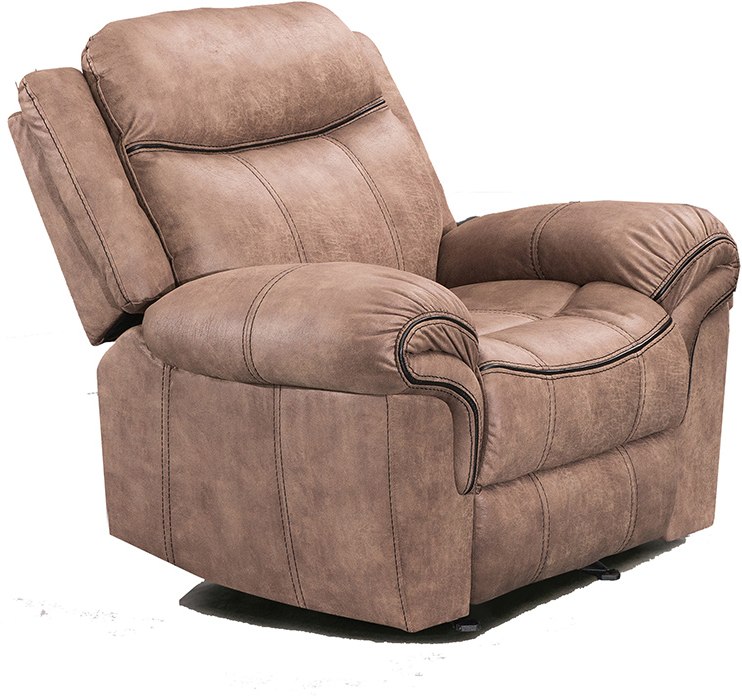 Glider Recliner In A Sand Colored Polished Microfiber Fabric With Black Stitching Heavy Welts. Matching U105 Sofa And Loveseat Are Available.