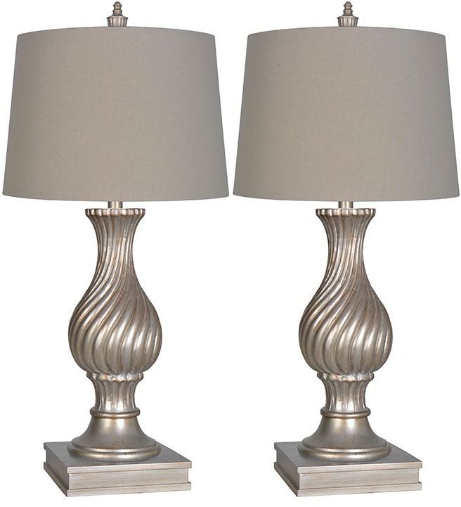 Table Lamp Features A Polyresin Base. Black With Gold Highlights. Light Grey Shade.Read More