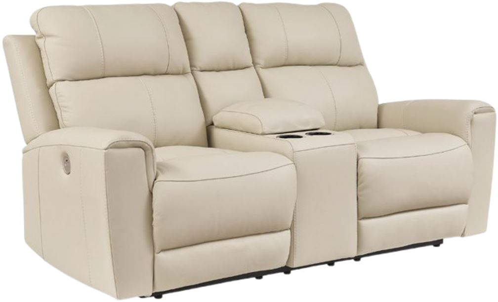 Focus on function. This practical power reclining loveseat with console balances contemporary character and irresistible comfort. It's affordable, expertly matched leather and faux leather upholstery keep your style up to speed without breaking the bank. The loveseat plays well in relaxed, luxe seating areas made for quality time.Read More